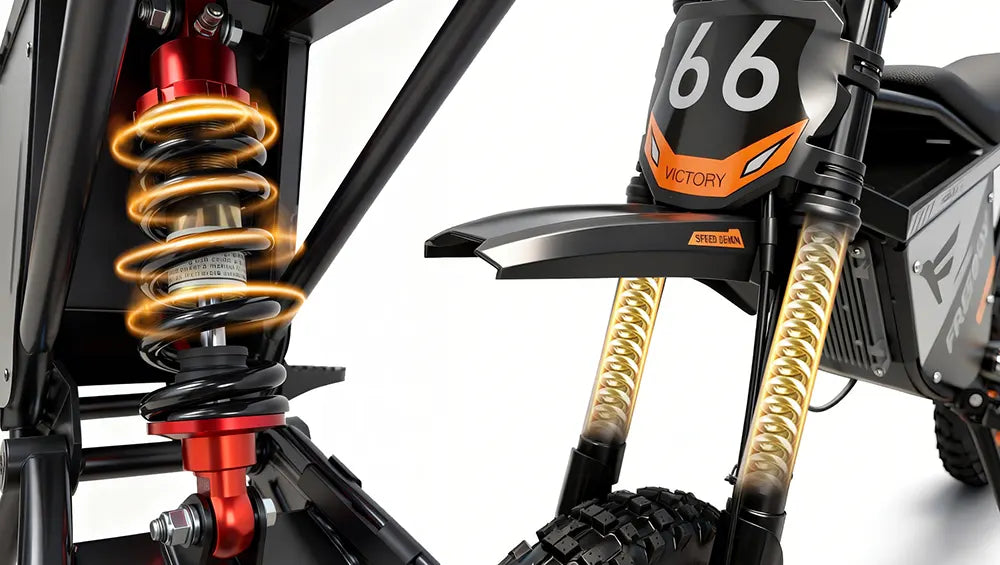 Advanced front and rear suspension system with smooth, responsive shock absorption for all-terrain comfort.