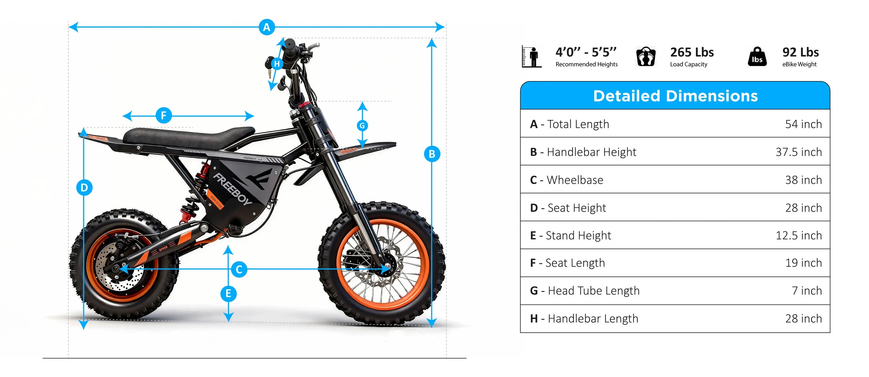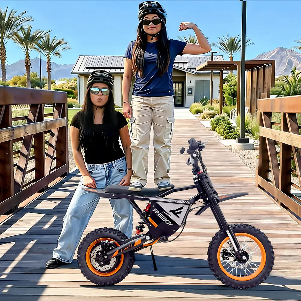 The Dakeya Freeboy Y66 3000W Dirt Electric Bike is a rugged off-road machine built for riders who demand power, agility, and adventure. With a 3000W rear hub motor, a top speed of 34 MPH, and up to 31 miles of range, it’s designed to conquer dirt trails, rugged paths, and challenging terrain. Featuring 12” front and 10” rear tires, a heavy-duty iron frame, and a high-capacity 48V 30Ah battery, the Y66 delivers a smooth, controlled, and thrilling ride every time.