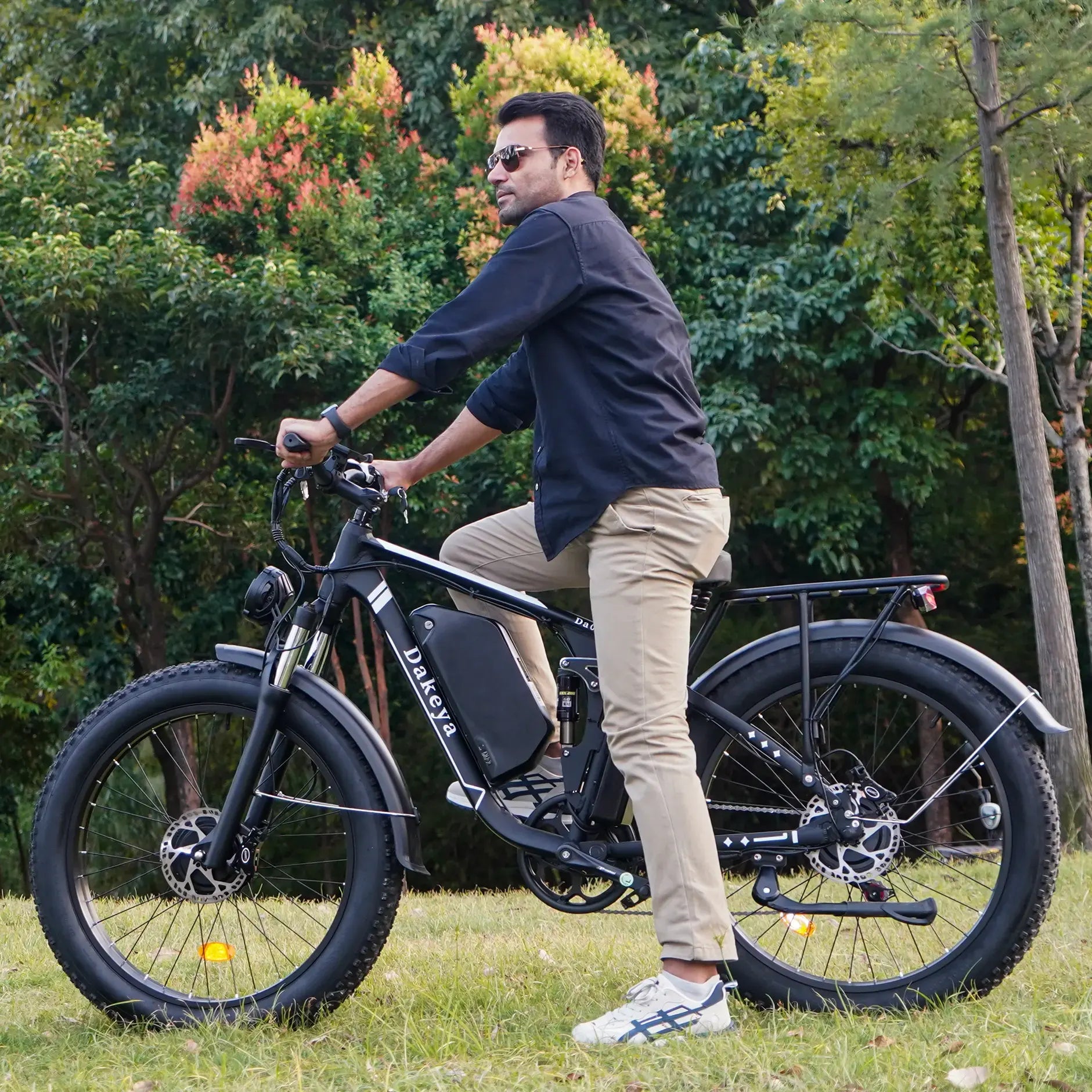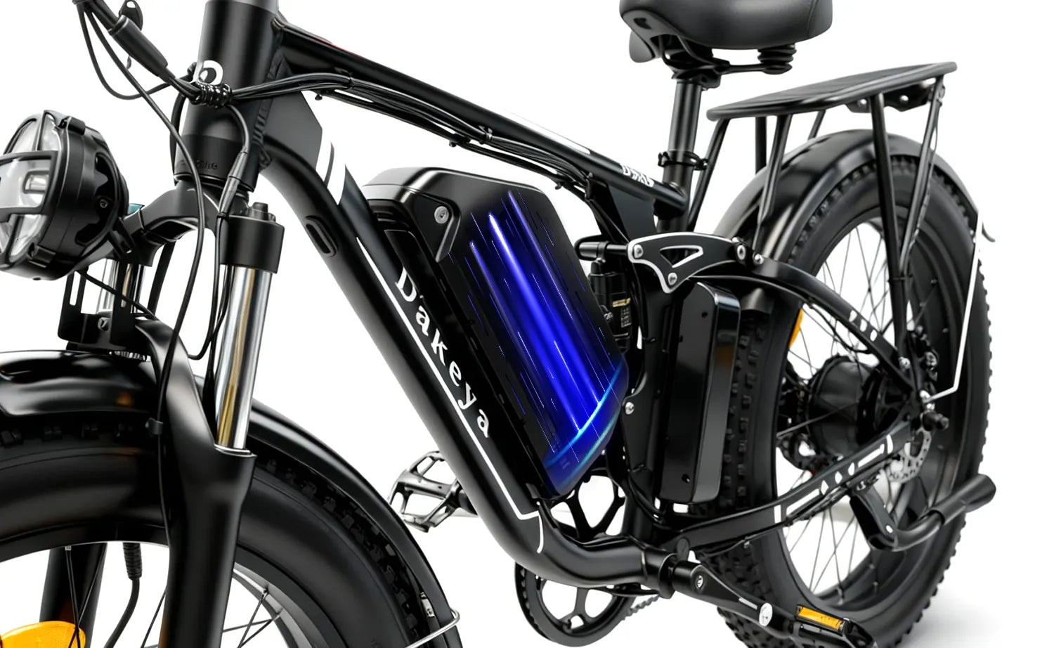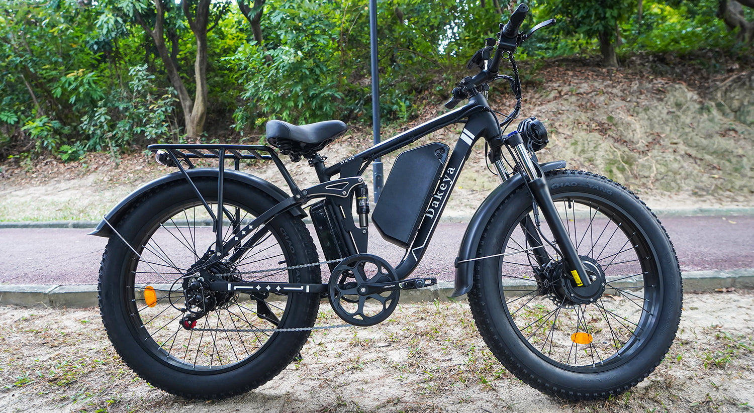 The Dakeya DA03 Dual Motor Electric Bike stands out with its bold Black finish and rugged fat-tire design. Powered by dual 2500W motors and a full-suspension frame, the DA03 is built to dominate both city streets and off-road terrain with confidence and control.