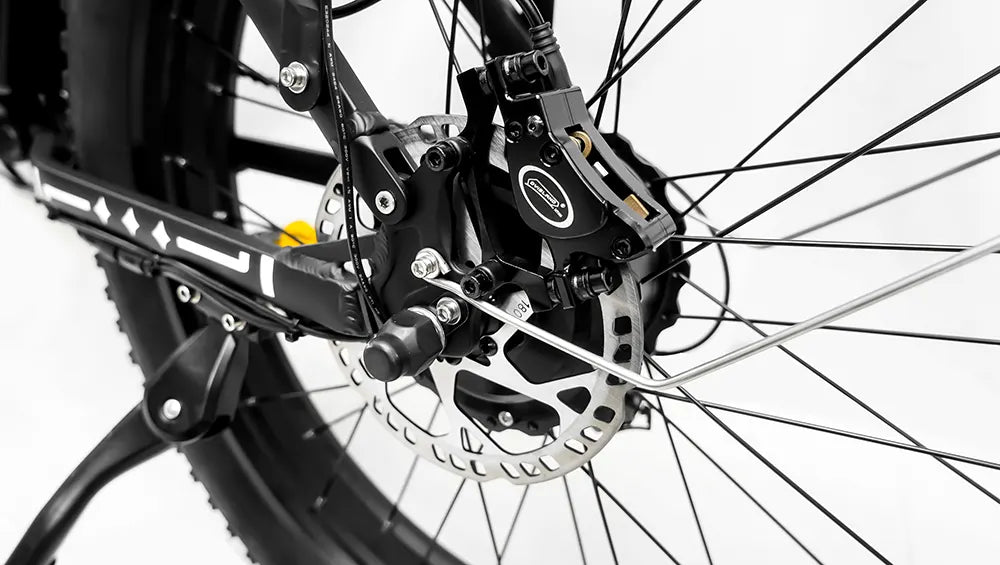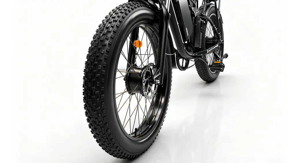 Designed for all-terrain performance, these wide 26-inch fat tires offer excellent grip, shock absorption, and stability on sand, gravel, snow, and city streets alike.