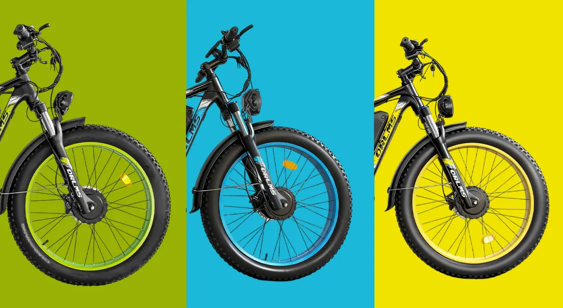 The Finder 26 Electric Bike makes a statement in blue, green, or yellow, featuring durable fat tires and dual 2500W motors. Its aggressive frame design is built to handle both city streets and off-road trails with confidence and control.